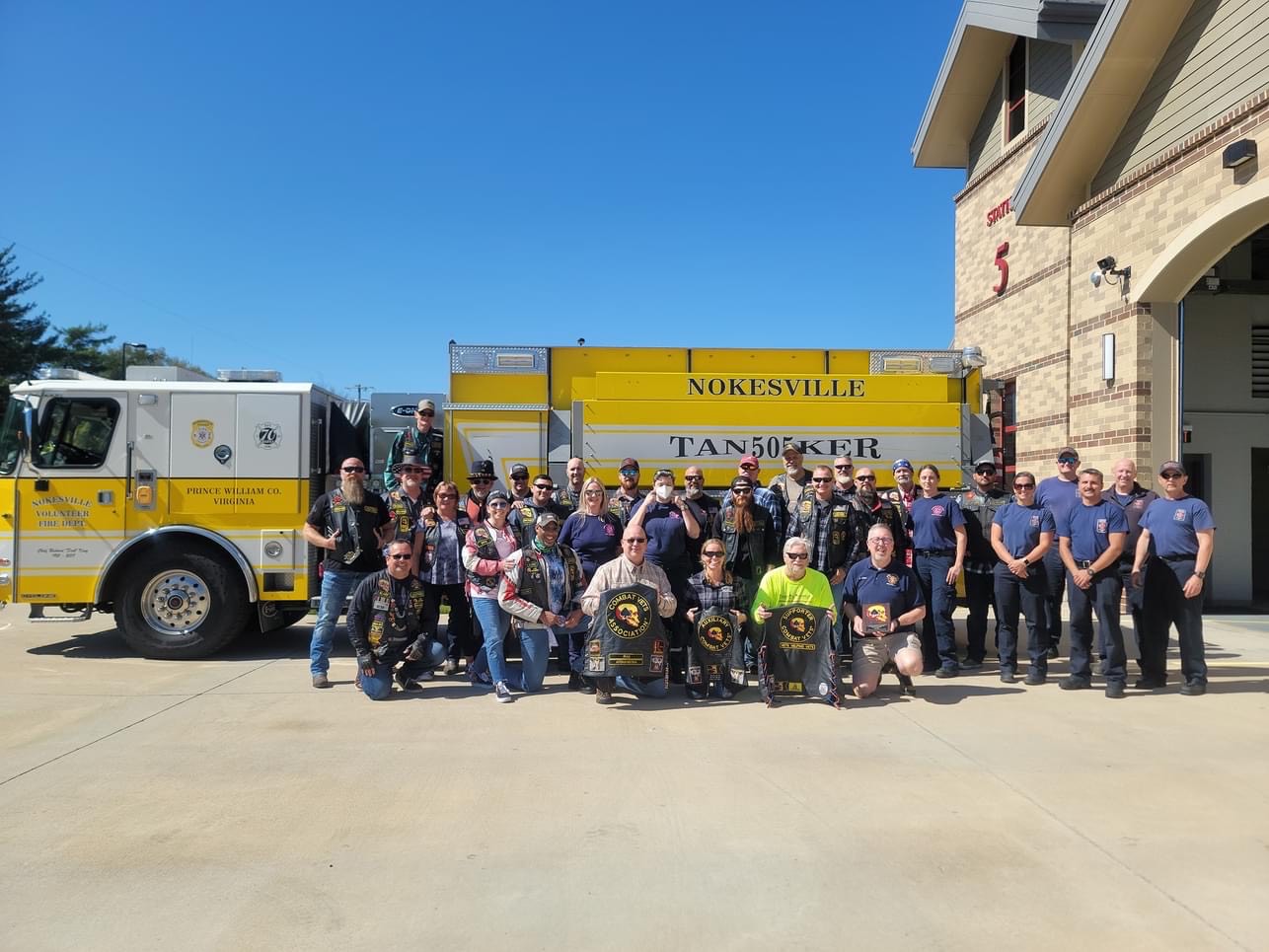 September 18, 2023, Nokesville VA – This past weekend members of the Combat Veterans Motorcycle Association, Chapter 27-2, stopped by Fire Station 5 to thank the crews and the members of Nokesville Volunteer Fire and Rescue along with Prince William County Fire and Rescue for supporting this clubs Poker Run that took place in July 2023.