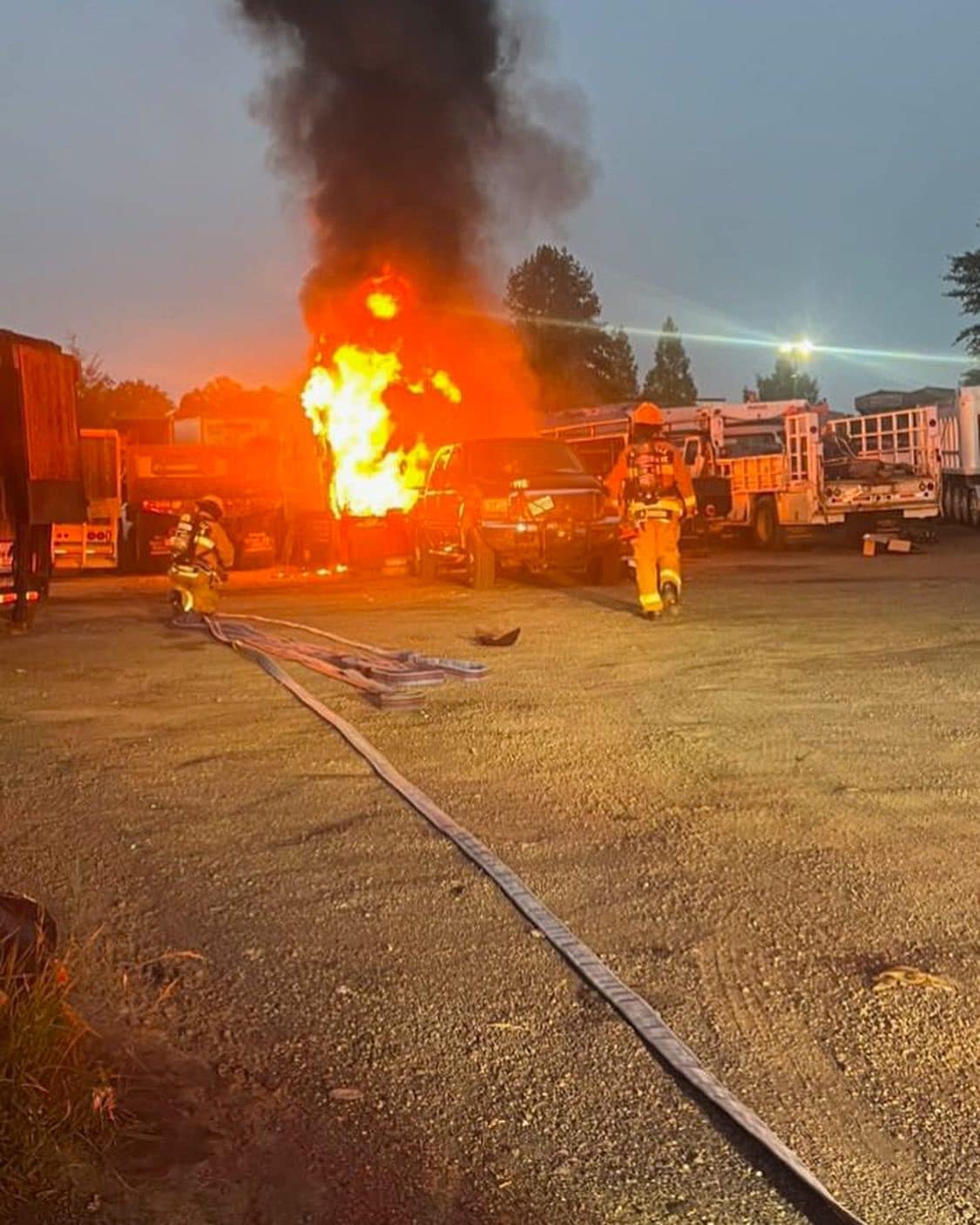 Earlier this month, Nokesville Volunteers from Fire Station 25 were dispatched to a report of a truck on fire. Engine 25 arrived on scene to find one commercial truck with fire evident from the cab and extending to other vehicles in the lot. The Crew on Engine 25 made quick work knocking down the fire and assisted the Fire Marshals with their investigation before returning to service.