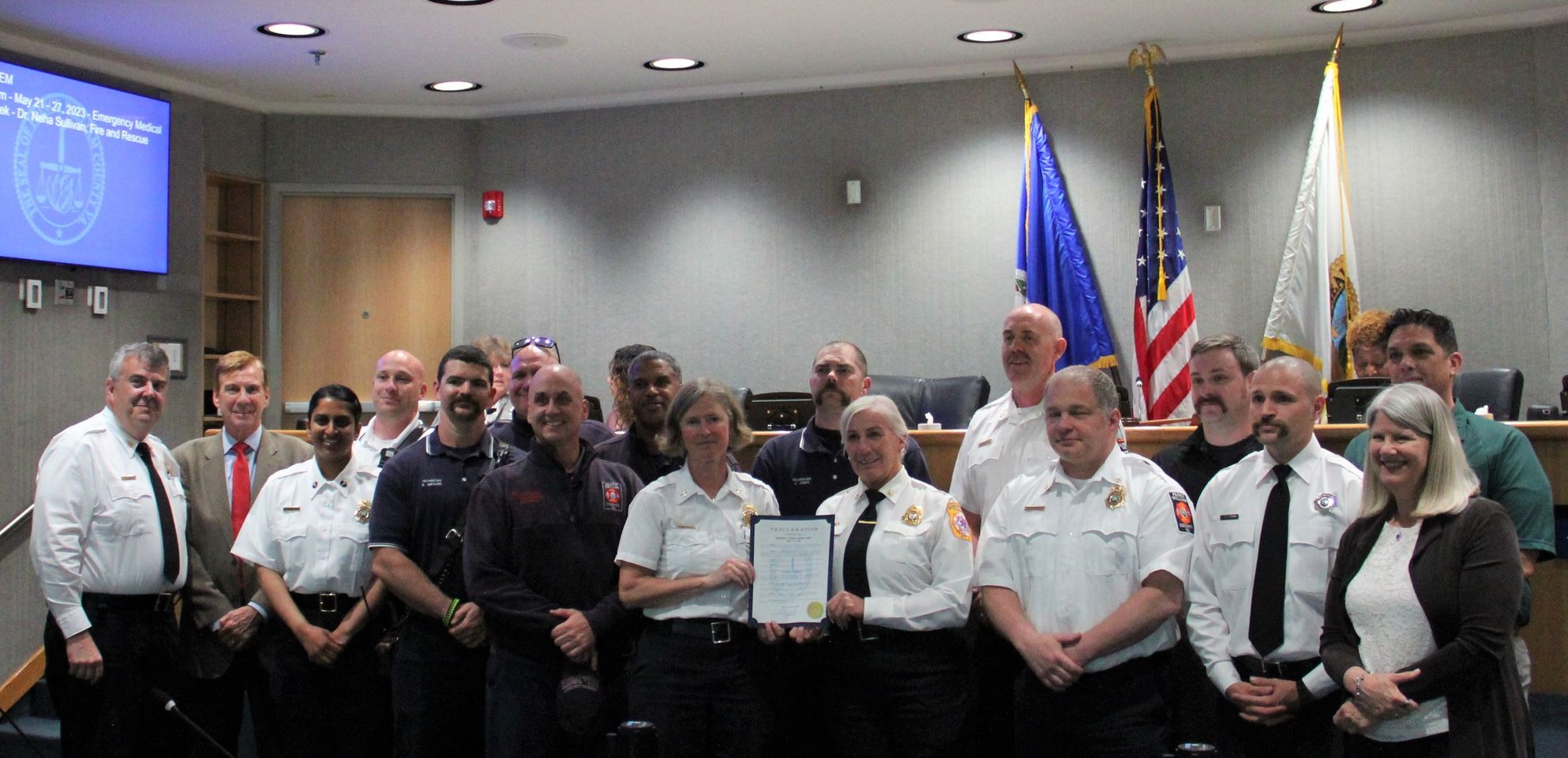 On Tuesday, May 9th, members of the Prince William County Fire & Rescue System, along with Chief Thomas LaBelle, former Prince William County Supervisor John Stirrup, and Operational Medical Director Dr. Neha Sullivan, accepted a proclamation from Prince William Board of County Supervisor Chair-At-Large Ann B. Wheeler recognizing this year’s EMS Week: Where Emergency Care Begins, May 21st – 27th.