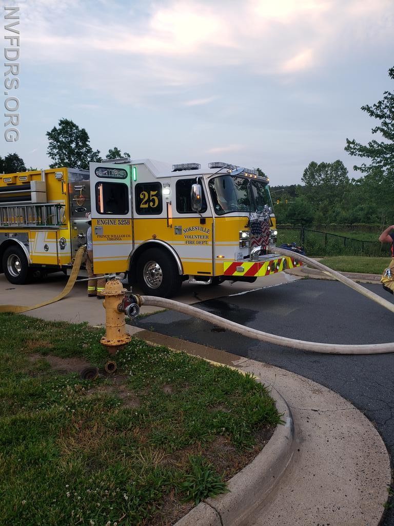Last night, career and volunteers assigned to our Fire Station 25 (Sudley Manor and Linton Hall Rd) got together to help Firefighter Garcia work on his skills so he can pass the 3rd party test to be a DPO (Driver Pump Operator). This training ensures that he has all the knowledge and skills required for a critical role. Last night he was tested on flowing large volume of water from Engine 525 to Truck 525.
