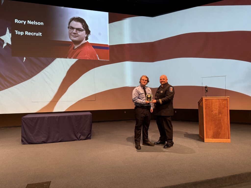 Also, further congratulations to Firefighter Nelson on graduating as the Top Recruit in his class! The Top Recruit Award is given to the individual who has academically excelled beyond their peers in class with the overall highest grade point average on written exams.